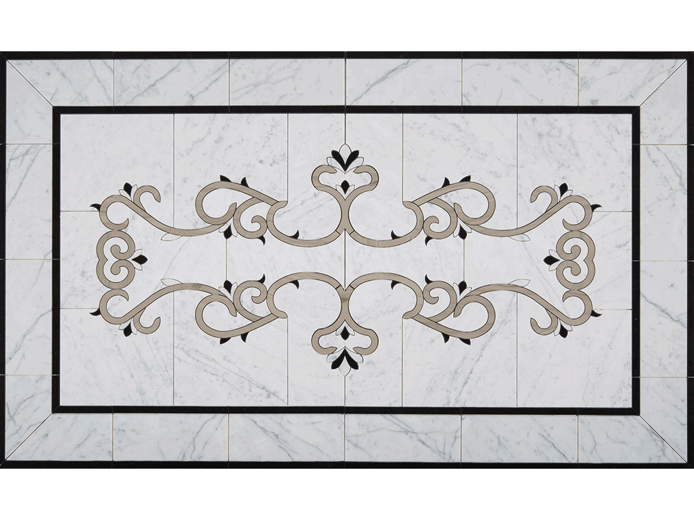 Đá hoa văn chữ nhật 030 với nền đá marble màu trắng có vân nhẹ nổi bật hoa văn đá màu kem và điểm xuyến màu đen. Với màu sắc nhẹ nhàng, chúng phù hợp cho cả những ngôi nhà mang phong cách hiện đại